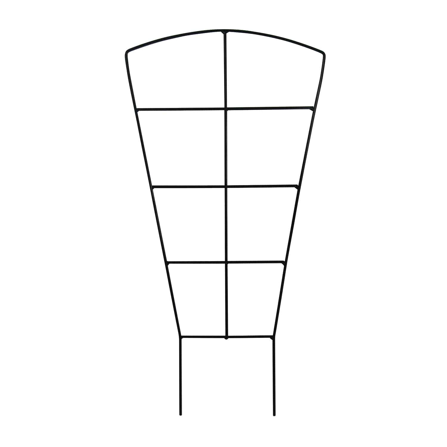 Our Growers Trellis features a classic design, encouraging plant growth both upward and outward. It has a strong base for climbing plants and its smaller size makes it the perfect addition to any garden! Black in color and made from iron and steel, it is durable, great in any climate, and is perfect for ivy, vines and smaller climbing plants.