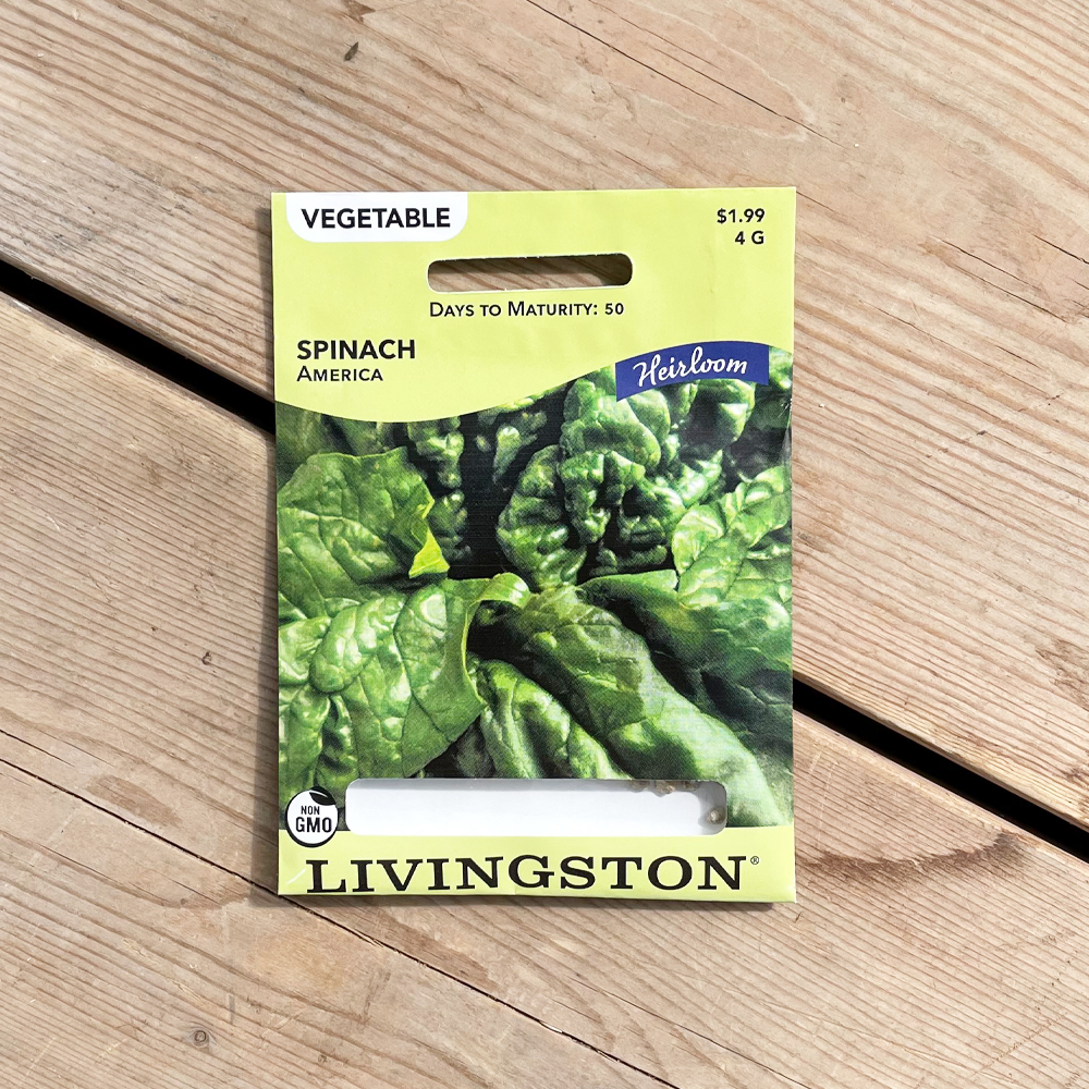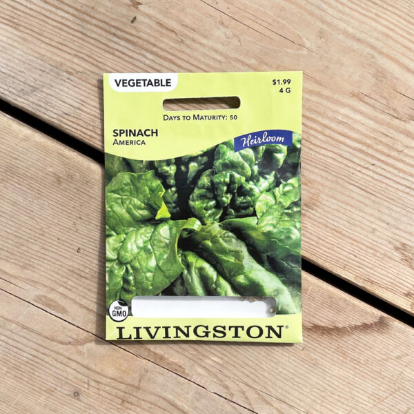 As are many heirloom varieties, America Spinach is known for outstanding flavour. This is a savoy-leafed (curly leaves) plant that grows approximately 12″ in width. Suitable for spring and fall sowing, producing fine quality plants. Enjoy fresh in your salads, or freeze for tasty dishes later. America Spinach is drought and heat tolerant.