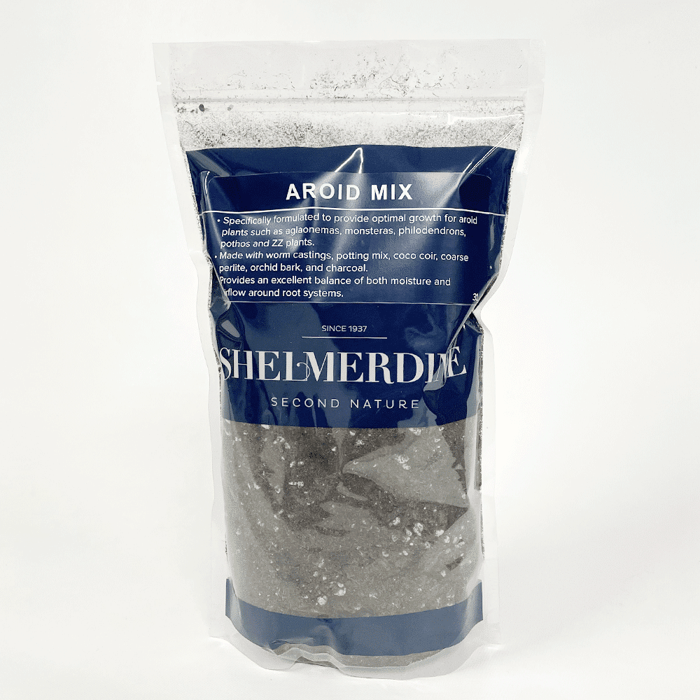 Our Shelmerdine Aroid Mix is specifically formulated to provide optimal growth for aroid plants such as aglaonemas, monsteras, philodendrons, pothos and ZZ plants. Made with the ideal combination of worm castings, potting mix, coco coir, coarse perlite, orchid bark and charcoal. Comes in a 3L resealable bag.
