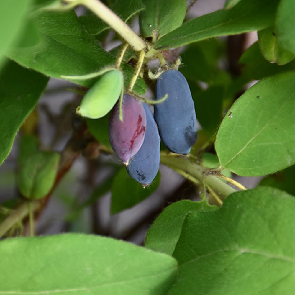 Aurora Honeyberry is a medium-sized shrub that is typically grown for its edible qualities, although it does have ornamental merits as well. It produces blue round berries which are usually ready for picking from late spring to early summer. The berries have a sweet taste.