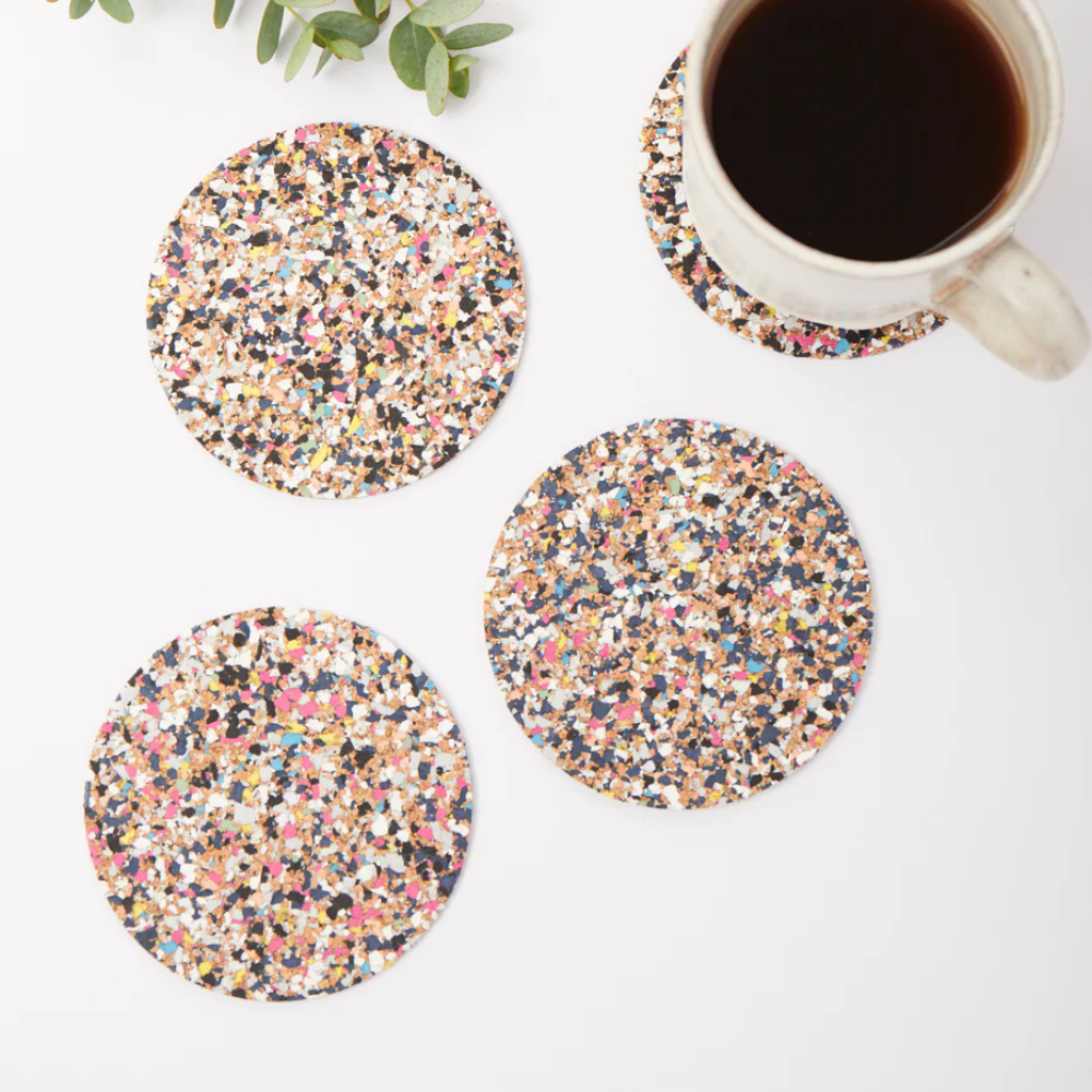 This Beach Clean material is a clever mix of cork with recycled EVA plastics. Once unloved and part of the problem these recycled plastics are now wanted and creating a solution. Flexible and soft to touch. Every batch is unique and a blend of different colours.
