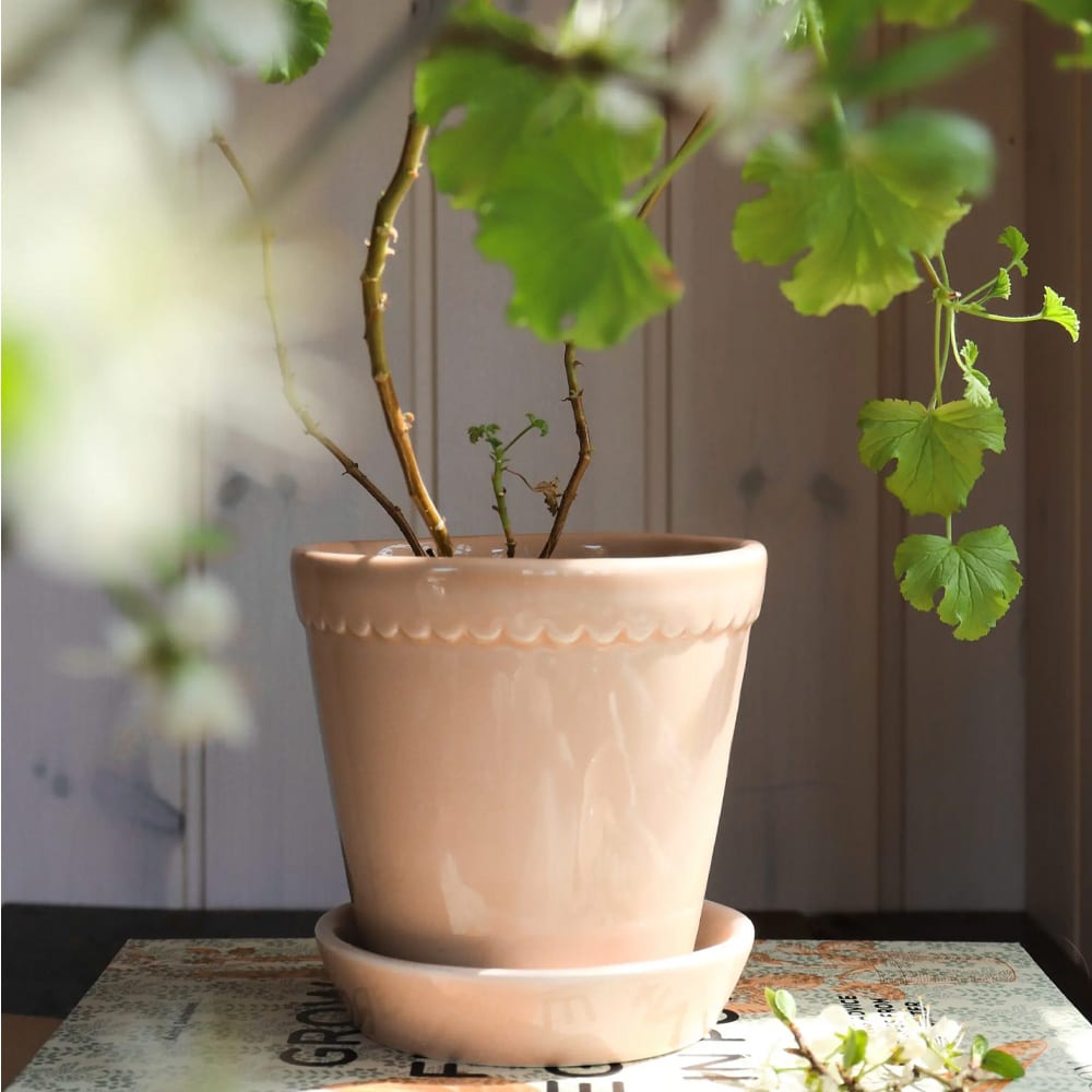 Introducing the Bergs Potter Helena Pot & Saucer in a rose glazed finish. The scalloped clay fringe along the top edge of the beautiful Helena Pot gives it a soft and classic look. You’ll certainly want to come in and visit our greenhouse for Helena in other colours and sizes. Make sure you also grab the matching saucer!