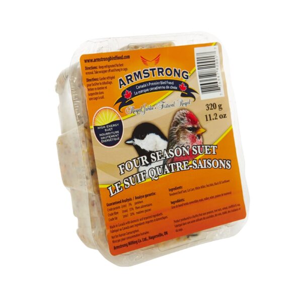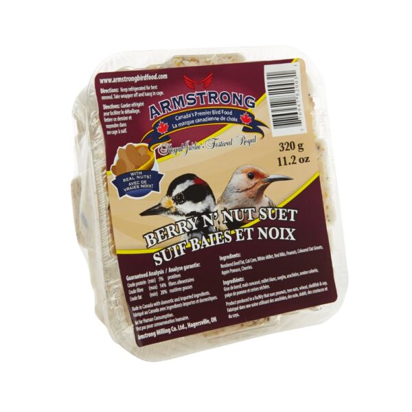 Our Berry And Nut Suet Cake is a beef tallow based snack for wild birds that is full of high energy nutrients! It’s proven to attract a great variety of wild birds and is best for feeding during colder weather months. This suet contains Rendered Beef Fat, Cut Corn, White Millet, Red Milo, Peanuts, Coloured Oats, Apple Pomace, and Cherries. Among other birds, it attracts your favourite Chickadees, Woodpeckers, Blue Jays, Common Redpolls, Nuthatches, and Northern Flickers.