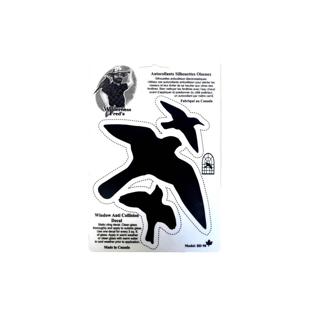 This is a must-have for all homeowners! Our bestselling Bird Alert Window Decals are a static cling film that sticks to glass and helps prevent birds from flying into windows. Use one decal per every square metre of window exposure. Each package includes 3 decals which can be moved and removed without any residue left behind.