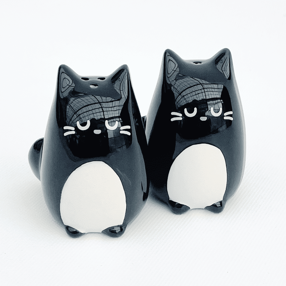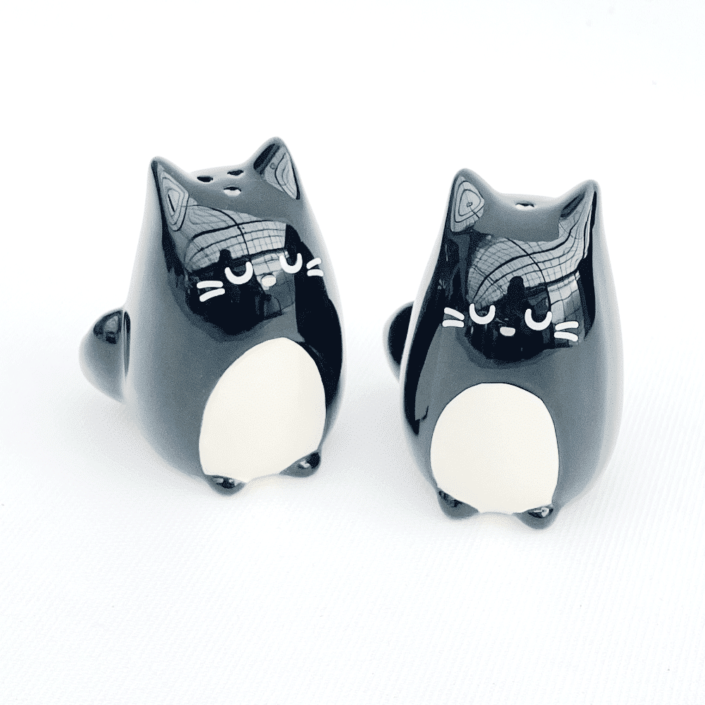This cute set of Black Cat Salt + Pepper Shakers will be a fun addition to any kitchen! Perfect for any cat lover!
