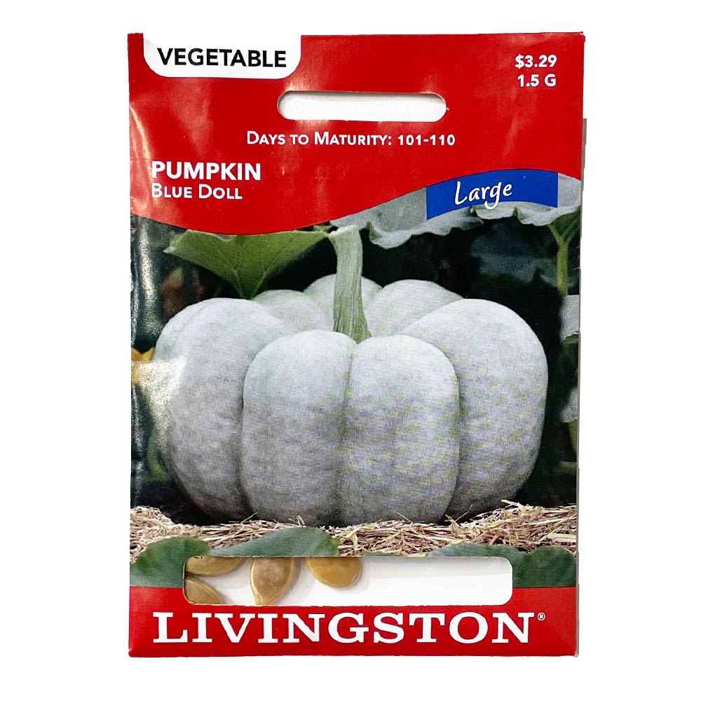 Blue Doll Pumpkin is just that! It is a unique pumpkin because of its almost square shape with deep ribbing and its eye-catching shade of blue. Blue Doll’s deep-orange, sweet flesh can be used for baking and cooking. A good choice to use in your fall displays to add interest. Be the first in your neighborhood to go blue!