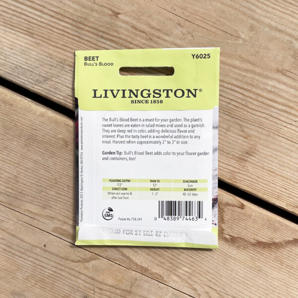 The Bull’s Blood Beet is a must for your garden. The plant’s sweet leaves are eaten in salad mixes and used as a garnish. They are deep red in colour, adding delicious flavour and interest. Plus the tasty beet is a wonderful addition to any meal. Harvest when approximately 2″ to 3″ in size.