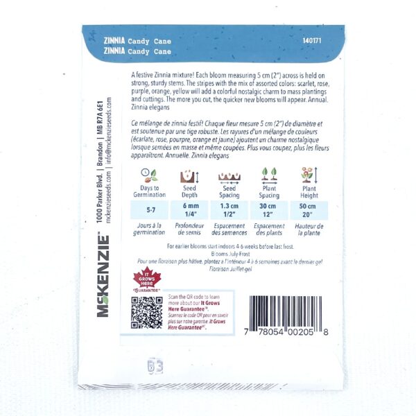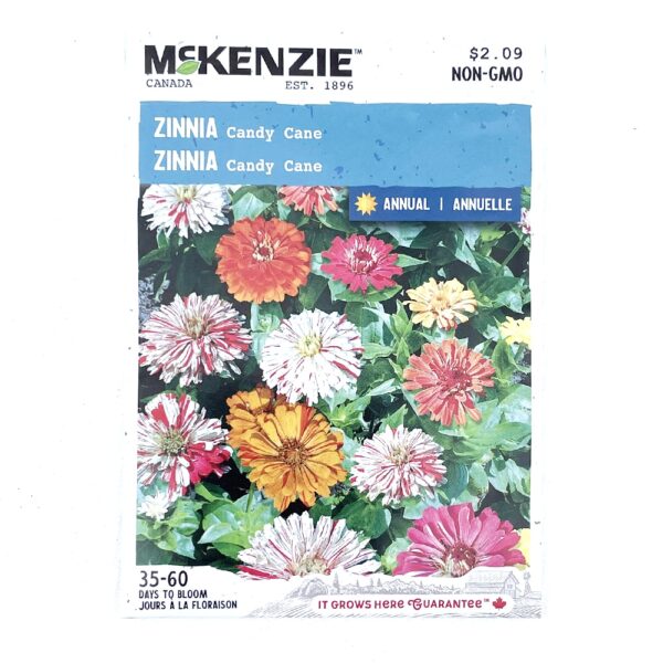 Candy Cane Zinnias are the festive mixture! Each bloom measures 5 cm (2″) across and is held on a strong, sturdy stem. Flowers bloom in a striped mix of scarlet, rose, purple, orange, and yellow. These delightful blooms will add a colorful nostalgic charm to mass plantings and cuttings.