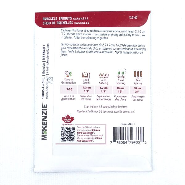 Cabbage-like flavor abounds from numerous tender, small heads 2.5-5 cm (1-2″) across which mature in succession on strong stalks. Catskill Brussel Sprouts are easy to pick and low in calories.