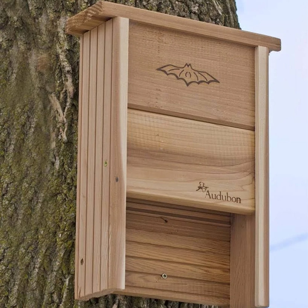 This beautiful handcrafted natural cedar bat shelter attracts more bats to your yard. Bats use their sonar to catch over 3, 000 insects per night. Find the proper placement by mounting your bat shelter 8-12 ffeet high in a tree or under the eave of a building. Place it near ponds, lakes or streams facing the sun.