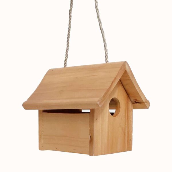 The wrens will love to make their own little home in this cedar wren house! This house has a jute string to hang from and a removable roof for easy cleaning.