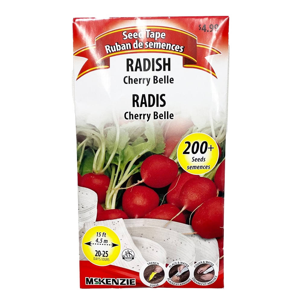 An All-American Selection! Cherry Belle Radish Seed Tape is a very popular and quick growing variety. Its round, bright red fruit resembles a cherry at 2 cm (3 /4″) in size. While red on the outside, the inside has crisp, white, solid flesh. This cool weather crop even holds its mild flavor in the refrigerator.