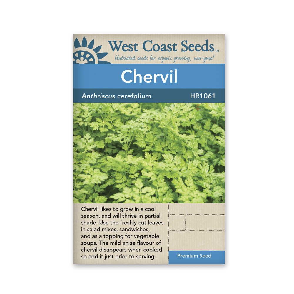 Start seeds indoors or direct sow in spring. Direct sow in summer and protect plants from midday sun for a winter crop – chervil is quite hardy. Keep transplanting to a minimum, as chervil develops a delicate taproot.