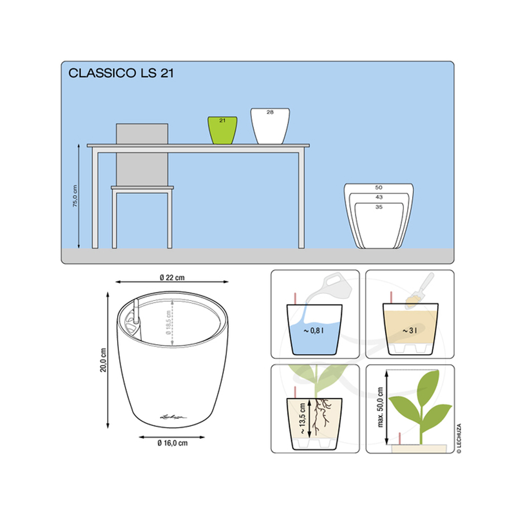 We love being able to offer a great selection of Lechuza Planters! Our Classico 43 Self Watering Planter fits beautifully into any space. A classic style that you can redesign again and again without great effort. The plant insert with patented handles makes it easier to replace and care for the plants in the standard Lechuza quality.