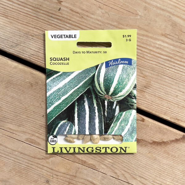 Cocozelle is an Italian zucchini with a bush habit, Excellent grown in a small garden as well as a container. Best harvested at 12″ long, or shorter, for slicing, frying and steaming. Pick often for prolonged harvest. Cocozelle is a good squash for freezing and canning.