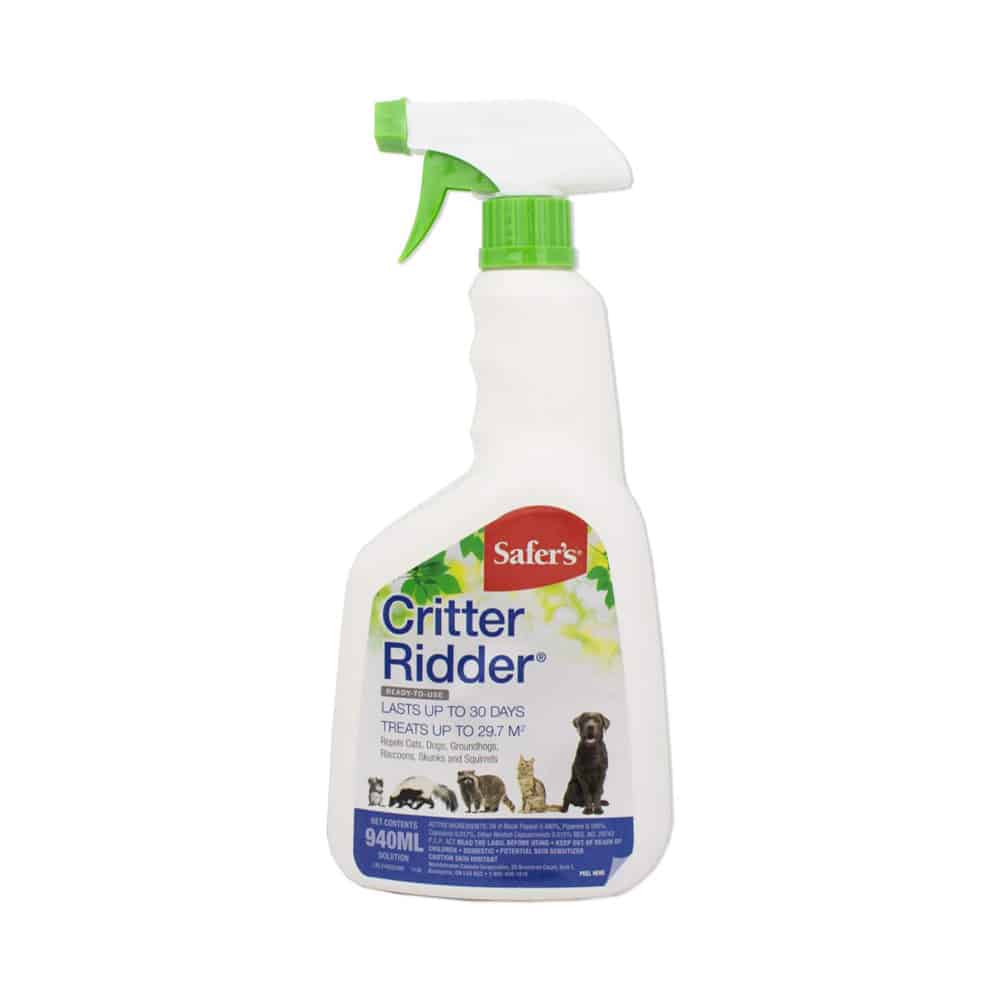Safer’s Critter Ridder Ready-to-Use spray repels cats, dogs, groundhogs, raccoons, skunks and squirrels. Lasts up to 30 days and treats up to 29.7M2. This spray includes ingredients that irritate the listed animals when they touch or taste the product.