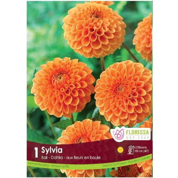 Dahlia Sylvia is loaded with warm, glowing apricot-orange flowers on long, strong stems. Perfect for cutting! One of the most amazing cut flowers, providing incredible colour in late summer and early fall. Height 40″. Contains 1 bulb per package.