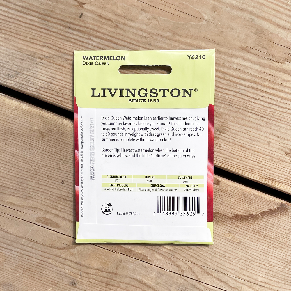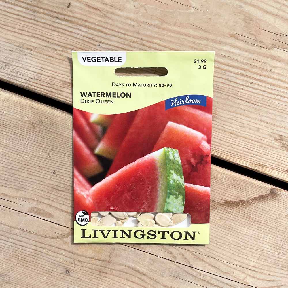 Dixie Queen Watermelon is an earlier-to-harvest melon, giving you summer favourites before you know it! This heirloom has crisp red flesh, exceptionally sweet. Dixie Queen can reach 40 to 50 pounds in weight with dark green and ivory stripes. No summer is complete without watermelon!