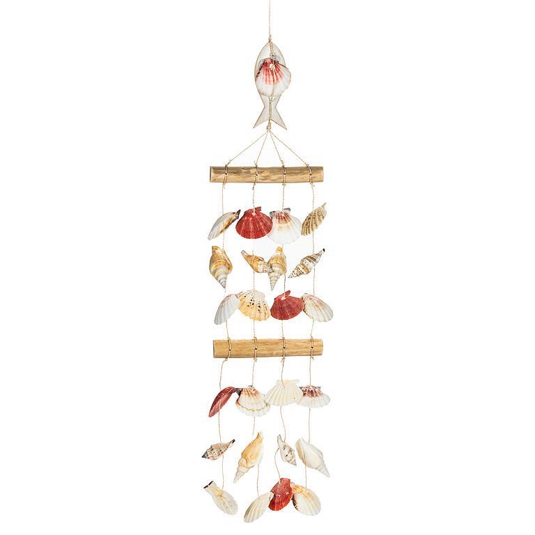 Elevate your decor with our Large 4-Strand Driftwood Wind Chime with Fish. Crafted with meticulous attention, it boasts four strands of natural seashells, creating a mesmerizing coastal melody. Measuring a substantial 24 inches, this chime brings a touch of aquatic serenity to your garden or patio. Transform your outdoor space with the calming sounds and whimsical design of this unique wind chime. Made in the Phillipines from responsibly harvested shells. Other sizes and styles also available.