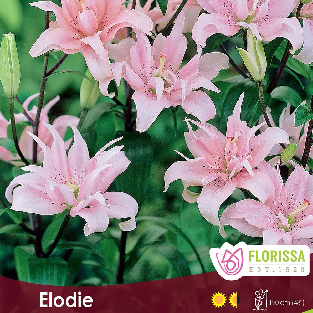 The Elodie Double Lily has beautiful pink, pollen-free blooms! Mother Nature must have lavished extra attention upon this incredible, double Asiatic lily! In early summer, the buds slowly open to reveal layer upon layer of candy-pink petals. The lush, long-lasting blooms are pollen free, so allergy sufferers and floral arrangers can enjoy them completely. Blooms increase annually, too, so your planting will grow more beautiful with each passing year!