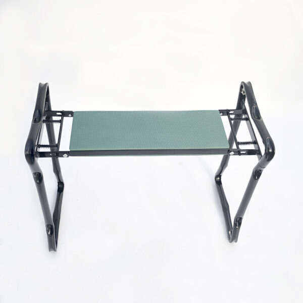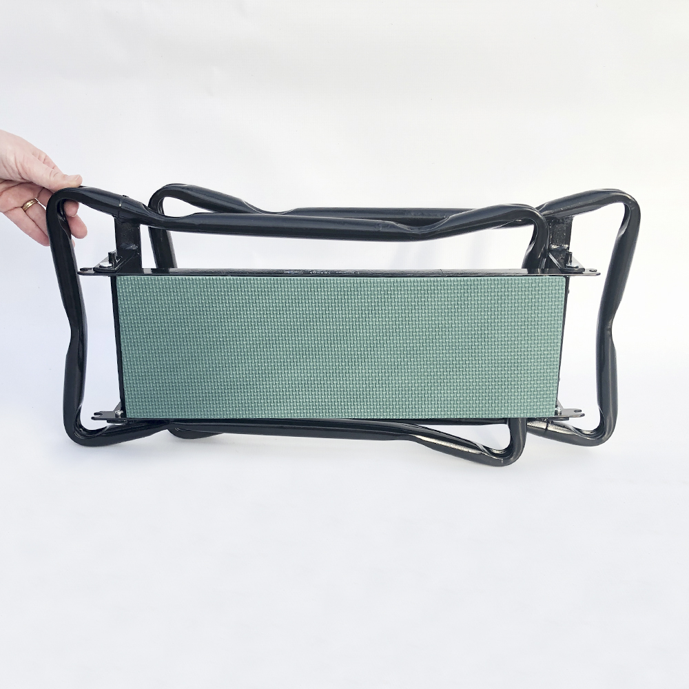Our folding kneeler/bench has multiple uses for gardening, household, camping, and sporting events. The hand rails assist in getting up and the generous 3/4″ foam padding is on both sides. A spring loaded lock catches both arms securely, all in a durable epoxy finish and lightweight tubular steel construction. Plus it folds for easy storage.