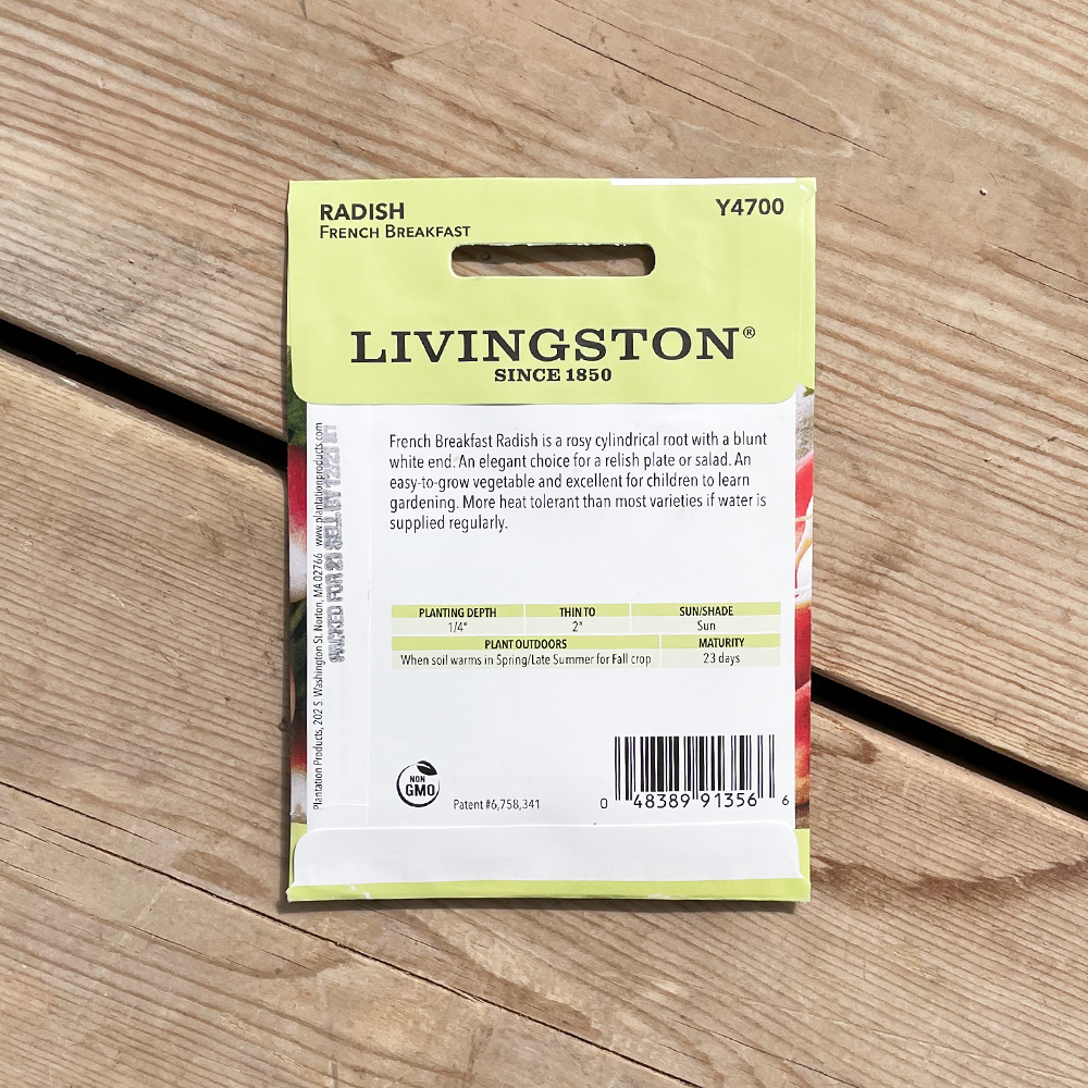 French Breakfast Radish is a rosy cylindrical root with a blunt white end. An elegant choice for a relish plate or salad. An easy to grow vegetable and excellent for children to learn gardening. More heat tolerant than most varieties if water is supplied regularly.