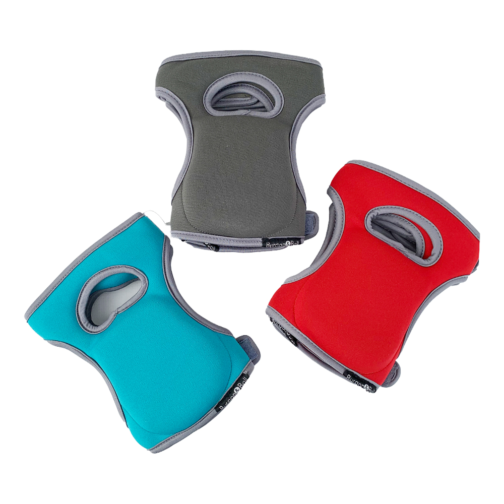 Each set of knee pads features adjustable Velcro straps in addition to an outer layer of water resistant neoprene and a quick-dry, wipe clean nylon cover
