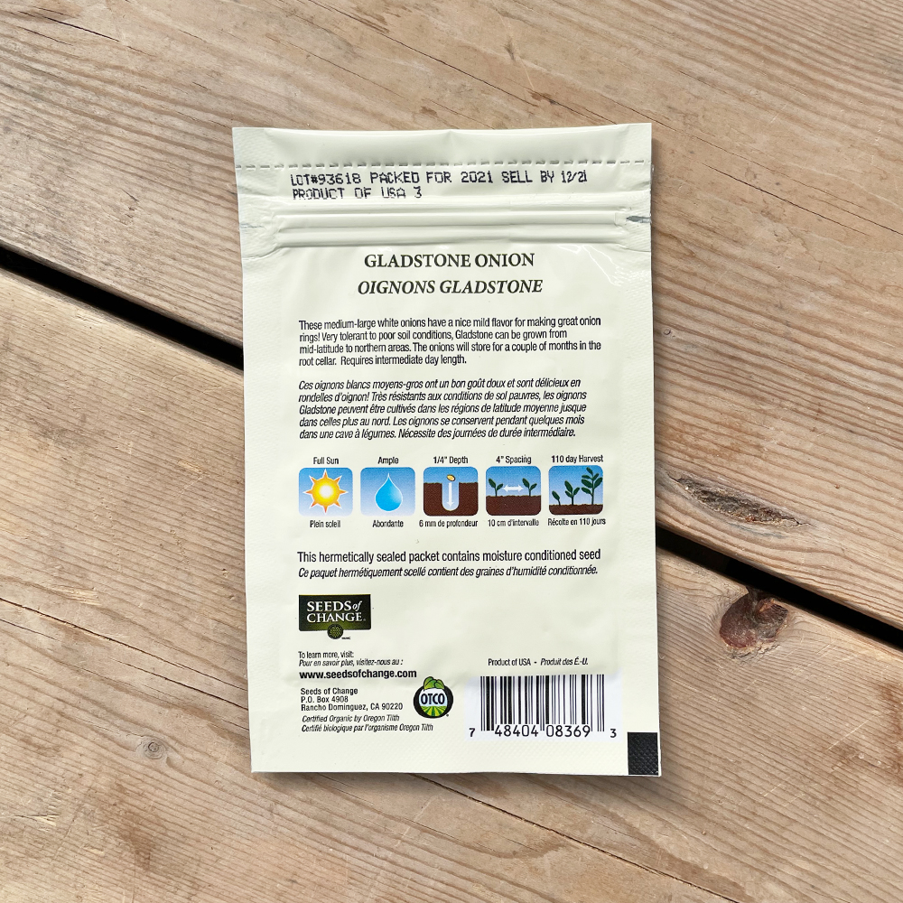 These medium-large white onions have a nice mild flavour for making great onion rings! Very tolerant to poor soil conditions, Gladstone can be grown from mid-latitude to northern areas. The onions will store for a couple of months in the root cellar. Requires intermediate day length.