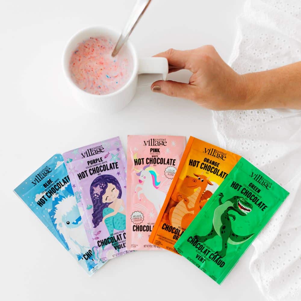 Introducing Gourmet Village Colour Changing Hot Chocolate Singles, just in time for the holidays and the cold weather! This hot chocolate changes colours when hot water or milk is added. So fun for the kids, and the perfect stocking stuffer.