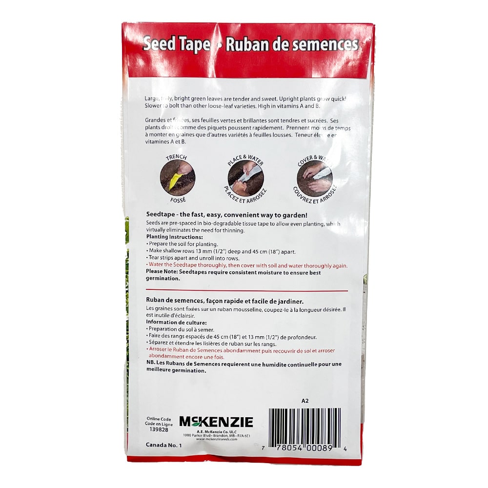 Prepare the soil for planting. Make shallow rows 13 mm (1/2″) deep and 45 cm (18″) apart. Tear strips apart and unroll into rows. Water the Seed tape thoroughly, then cover with soil and water thoroughly again.