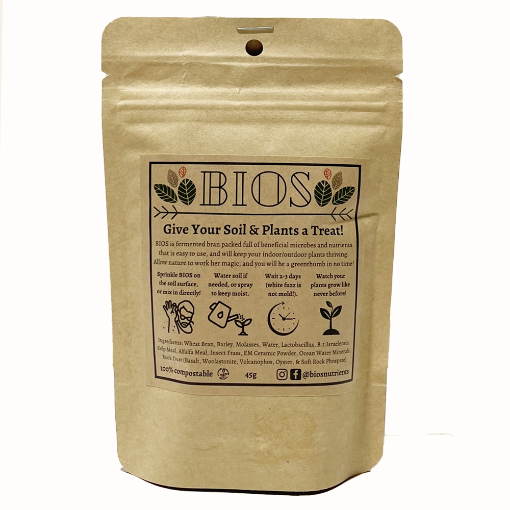 Our Granular BIOS Nutrients is a fermented bran that is packed full of beneficial microbes and nutrients that is easy to use and will keep your indoor and outdoor plants thriving. Allow nature to work her magic, and you will be a green thumb in no time.