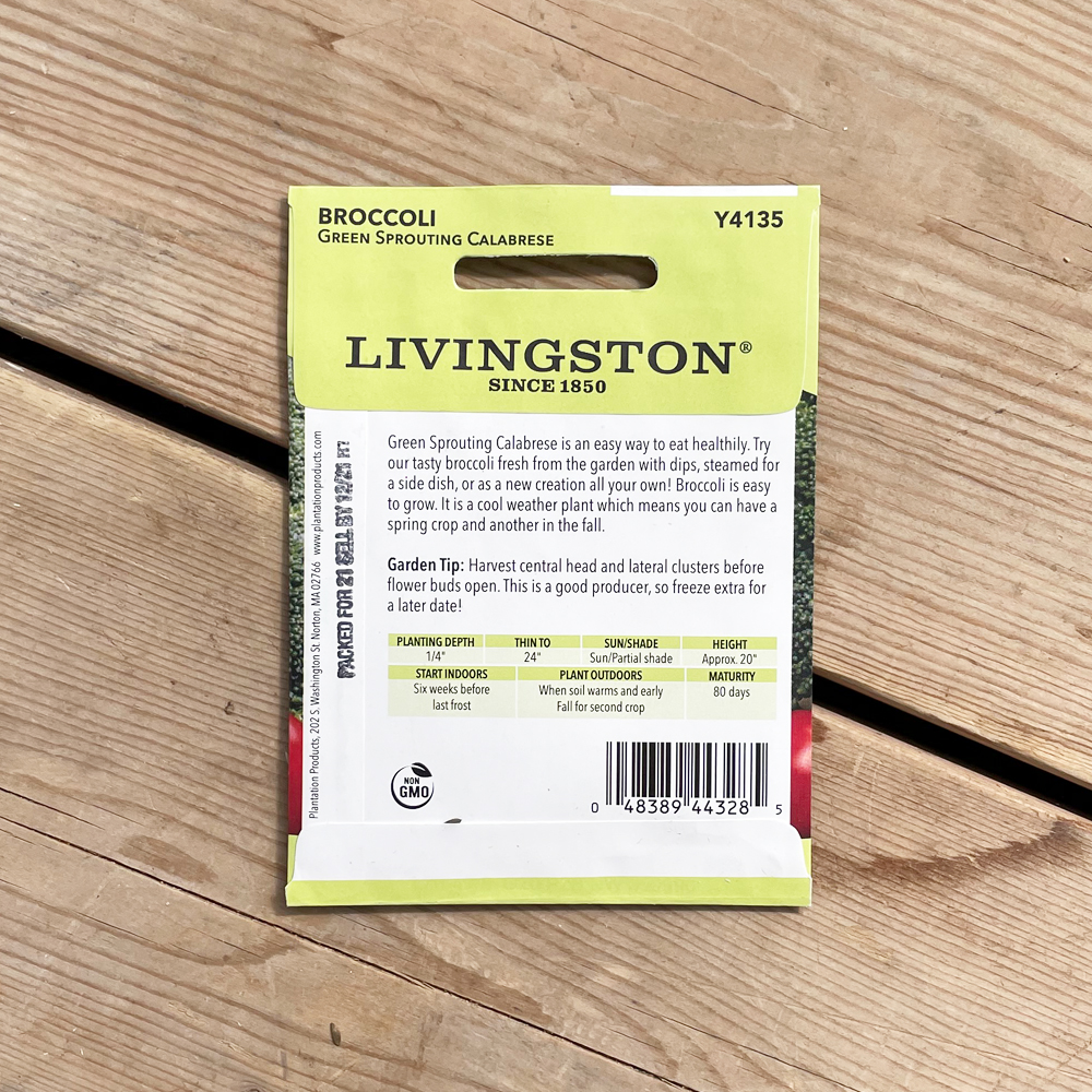 Green Sprouting Calabrese Broccoli is an easy way to eat healthy. Try our tasty broccoli fresh from the garden with dips, steamed as a side dish, or as a new creation of your own! Broccoli is easy to grow. It is a cool weather plant which means you can have a spring crop and another in the fall.