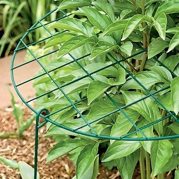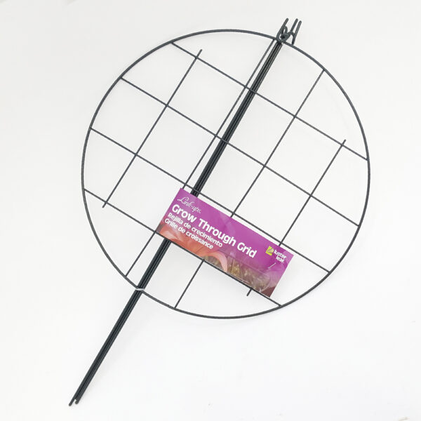 Our Grow Through Grid is perfect for emerging plants that need extra support. Situating a support grid above your flower or shrub helps keep the stems and blooms upright, encouraging root growth for a healthy plant. The green color of the grid meshes with shrubs easily. A top ring with a square grid forms the top of each unit, and the grid openings easily allow stems to grow through them. As the shrub or flower blooms, the grid forms a durable foundation, keeping the plant upright and reducing stress on stems and roots. Three long legs on each piece install into soil with ease, for quick placement over a growing plant. It can be flattened for seasonal storage. Great for lilies, peonies, and more!