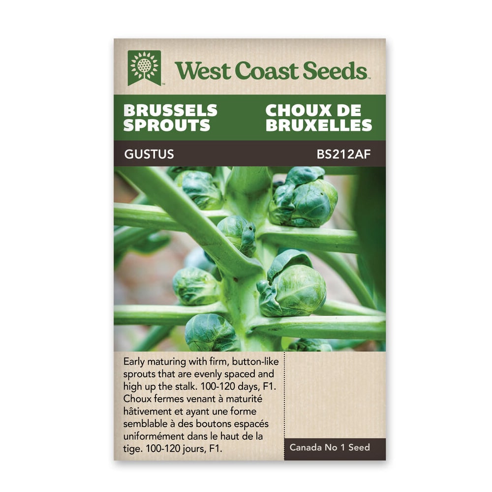 Gustus Brussels Sprouts are early maturing with medium green, firm, button-like sprouts that are evenly spaced and well formed. Don’t transplant until late April, and then harvest masses of tasty sprouts from late August through September. Plant more seeds in June for transplanting in August. These will be ready for late fall and winter harvests, so you can be the one to bring Brussels sprouts to the holiday dinner parties. Avoid transplanting Brussels sprouts into high nitrogen soils.