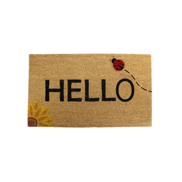 Greet your guests to your home, with the adorable Hello Ladybug doormat. Accented with a bright red ladybug, this indoor/outdoor mat is made from natural coir (coco) fibres. It works to effectively remove dirt from footwear.