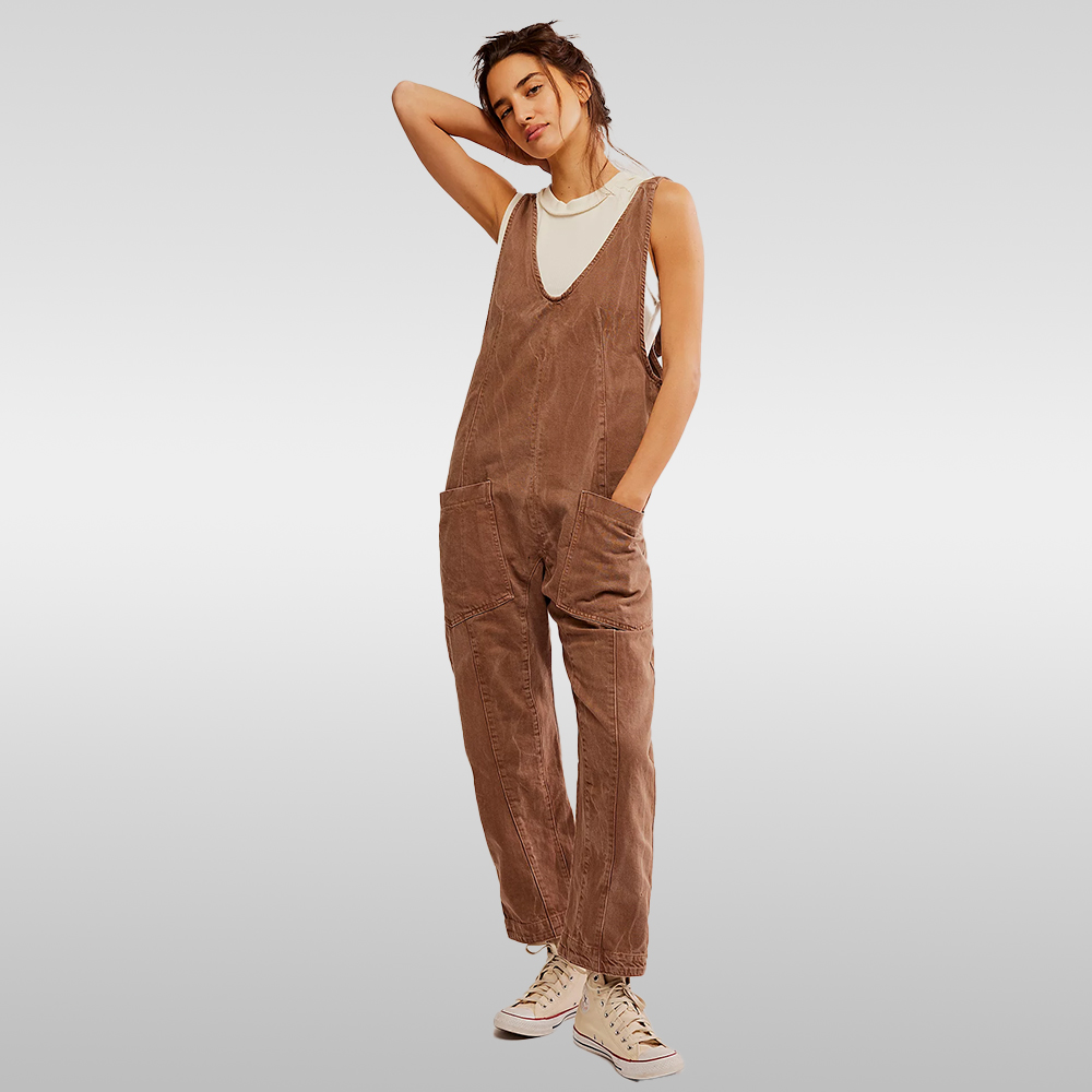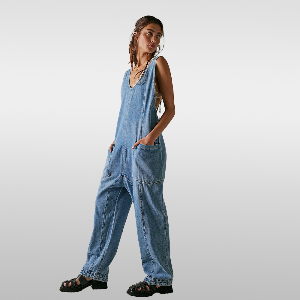 One-and-done and so simple, this denim jumpsuit from our We The Free Collection is featured in a relaxed fit and cropped ankle-length style with harem legs and a low scoop neckline.