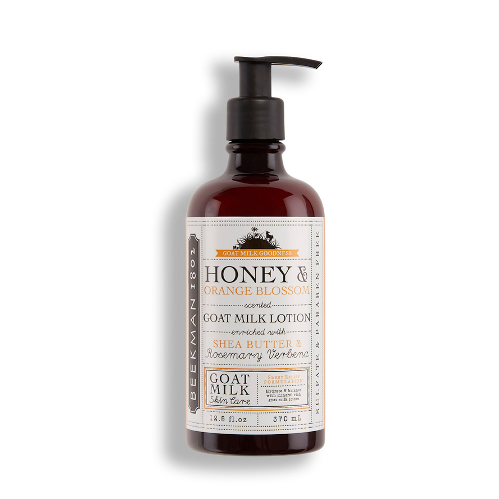 This Honey and Orange Blossom Goat Milk Lotion infuses dry hands with a burst of fresh moisture. Specially blended with sparkling white nectarine and nourishing honey to deliver optimal hydration and moisture.
