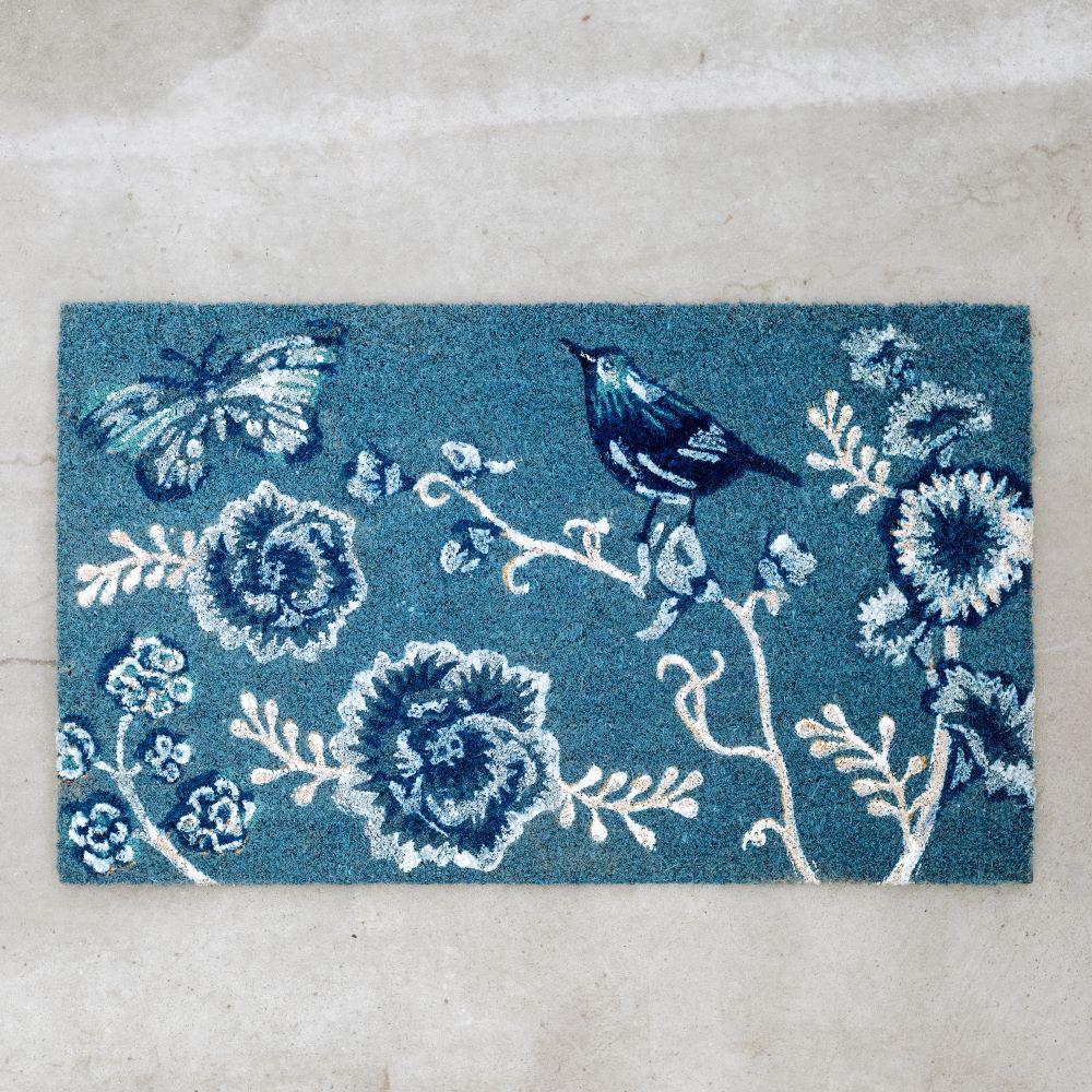 This beautifully artistic Juliette Doormat is the thing of Shakespearean dreams. Crafted out of durable coir fibre, and painted blue and white, this doormat features a variety of stunning birds and flowers.