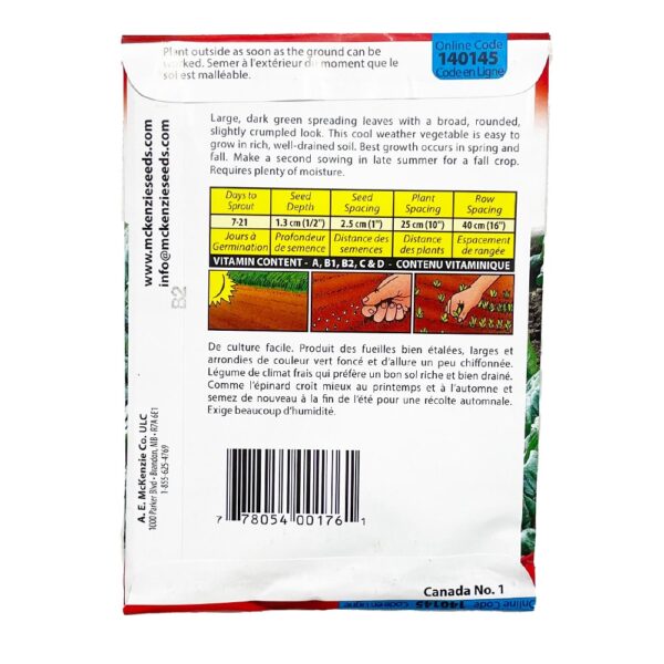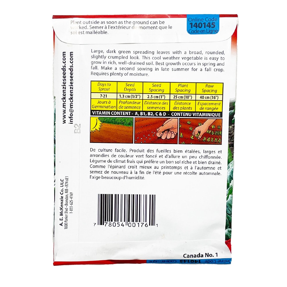 King of Denmark Spinach is large and dark green. Spreading rounded leaves with a broad, slightly crumpled look, it truly is vegetable royalty. This cool weather vegetable is easy to grow in rich, well-drained soil.