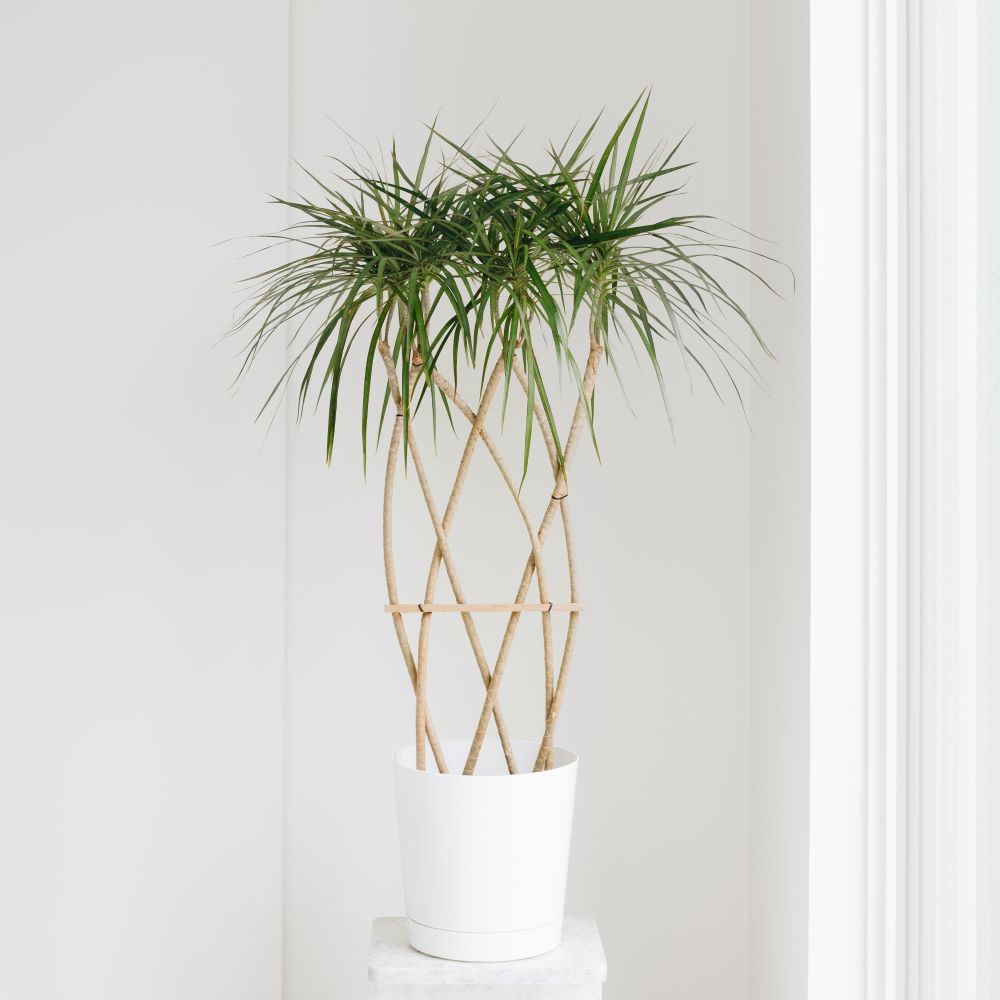 Dracaena Marginata, aka Madagascar Dragon Tree, has dark green and red striped, narrow leaves. It is very easy to care for, due to its adaptability, and it can provide a dramatic presence to any room. The Marginata Open Weave is achieved by braiding canes or stems together, producing a unique and intricate staple to add to your home. In nature, every plant is unique! Your actual plant may vary in size and shape from the pictured plant.