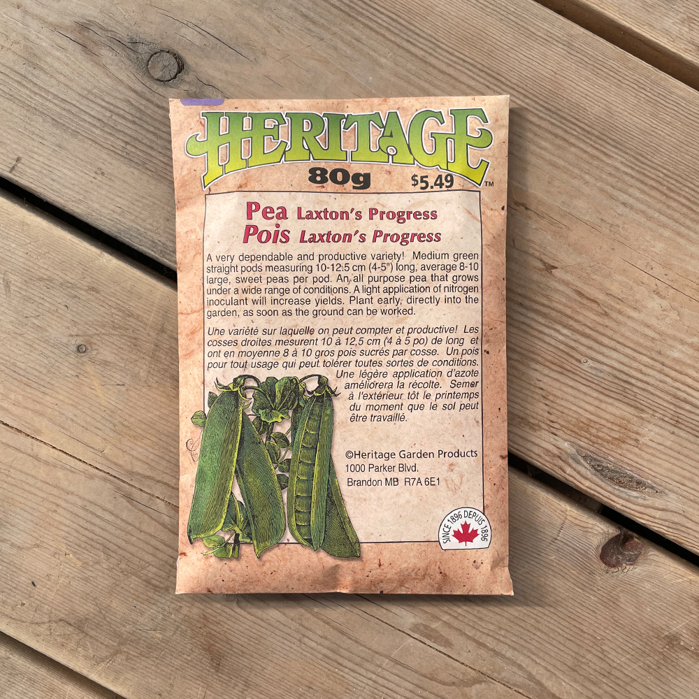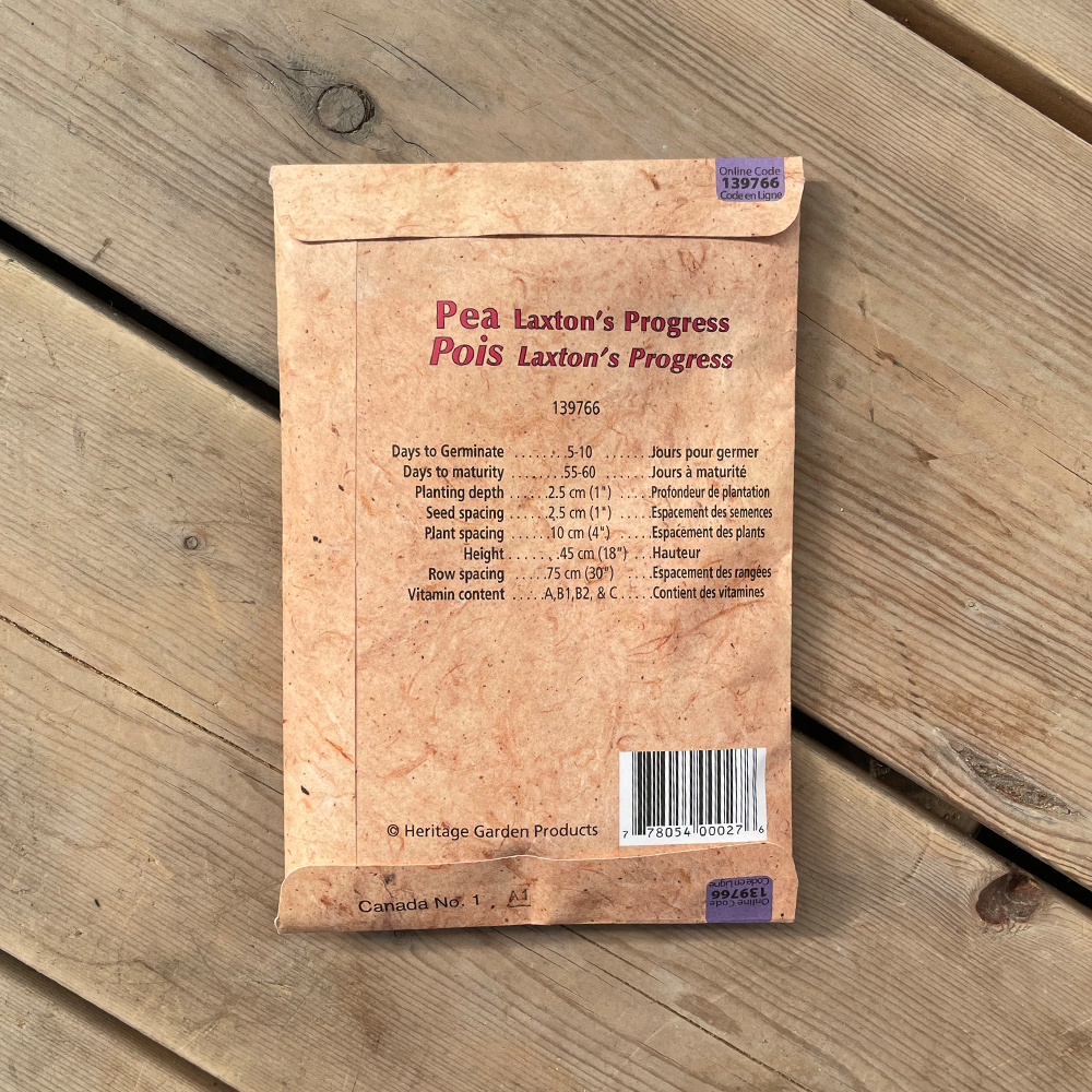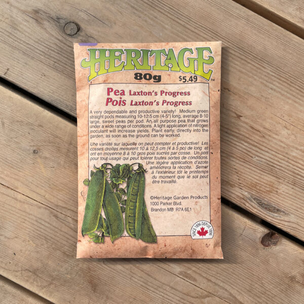 Laxton’s Progress Peas are a very dependable and productive variety! One of the earliest maturing peas, with a dwarf habit. Produces 10-12.5 cm (4-5″) pods with 8-10 large, sweet peas. Good yielder. An all purpose pea that grows under a wide range of conditions. Successive sowings every two weeks until early June, while the soil is still relatively cool, will prolong the harvest season.