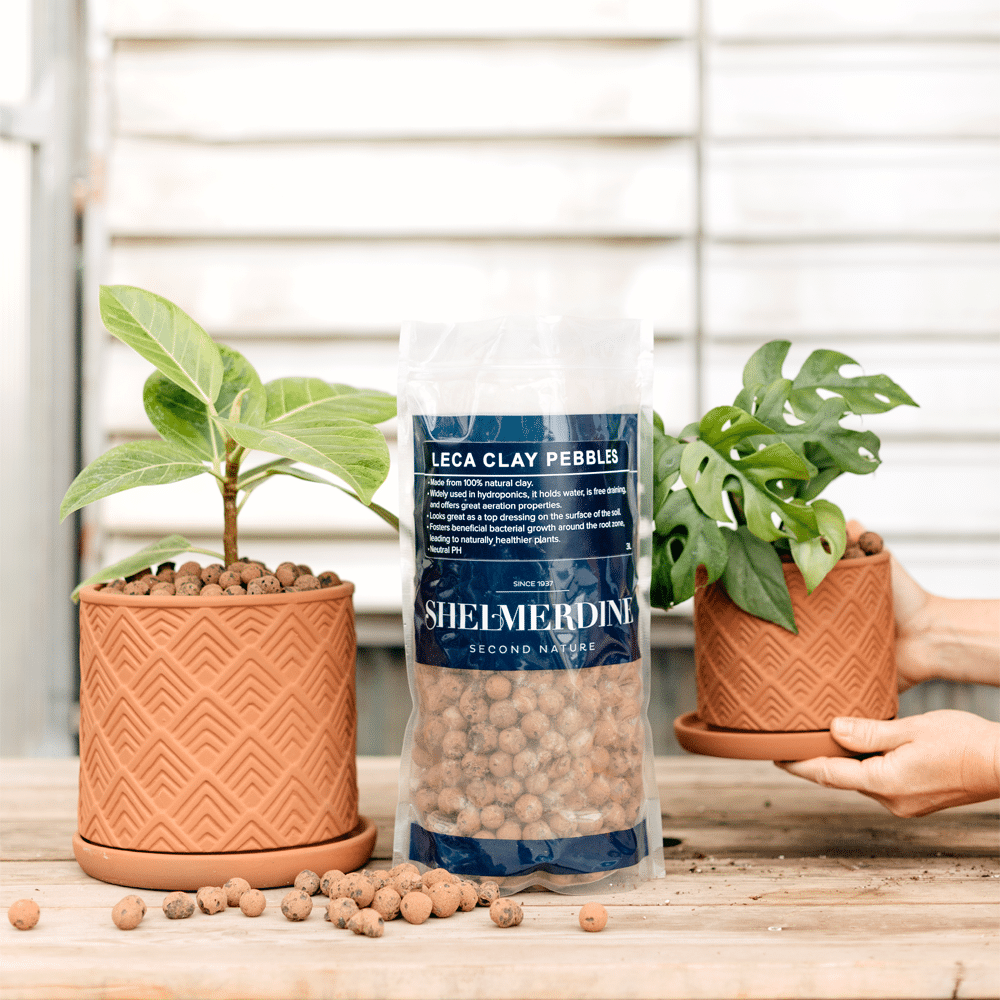 Our Shelmerdine Leca Clay Pebbles are made from 100% natural clay. Widely used in hydroponics, it holds water. is free draining and offers great aeration properties. Looks great as a top dressing on the surface of soil, and fosters beneficial bacterial growth around the root zone. Neutral PH. Comes in a 3L resealable bag.