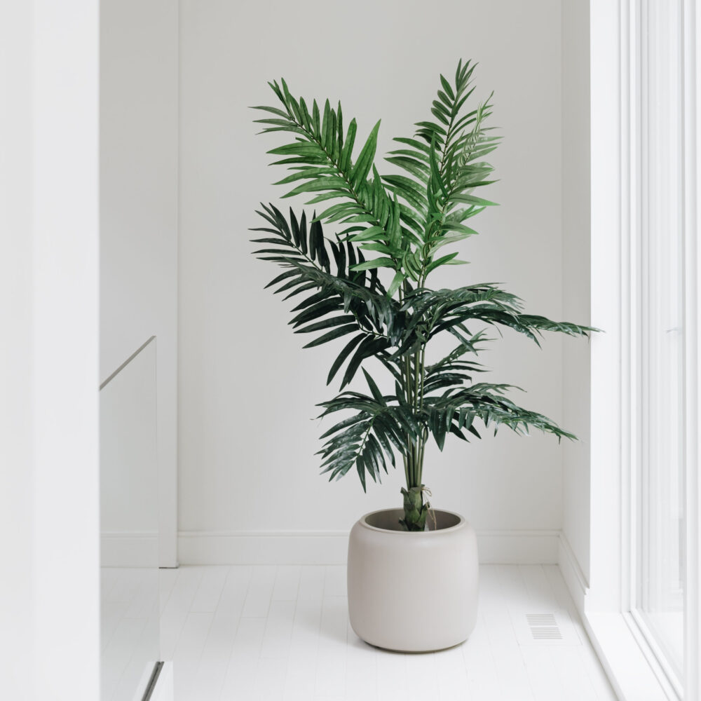 If you have a dark area in your home or office, you’re not a plant person, or you travel a lot, a lifelike plant such as our Lifelike Kentia Palm Plant is just the solution for you! It doesn’t require any maintenance, except for the occasional dusting. On trend and very realistic looking, this lifelike plant will breathe life into any space. Measures 62″ in height. Comes in a black plastic pot.