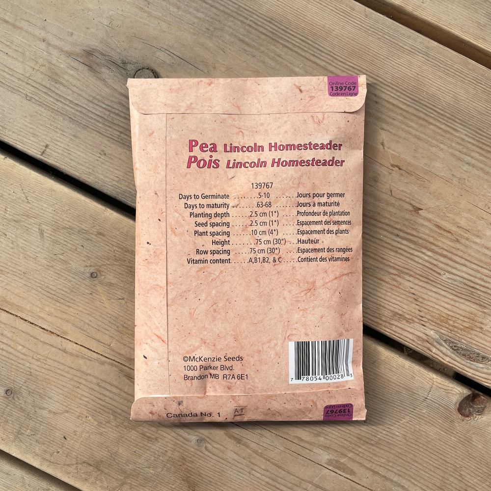 Lincoln Homesteader Peas have been a favorite of gardeners for generations. Its popularity is thanks to its very productive yields of top-quality, sweet-tasting peas. Heat tolerant and disease resistant, this variety produces slender 8 cm (3″) pods with 8-9 small peas per pod. Enjoy exceptional tenderness and sweetness fresh from the garden or frozen.