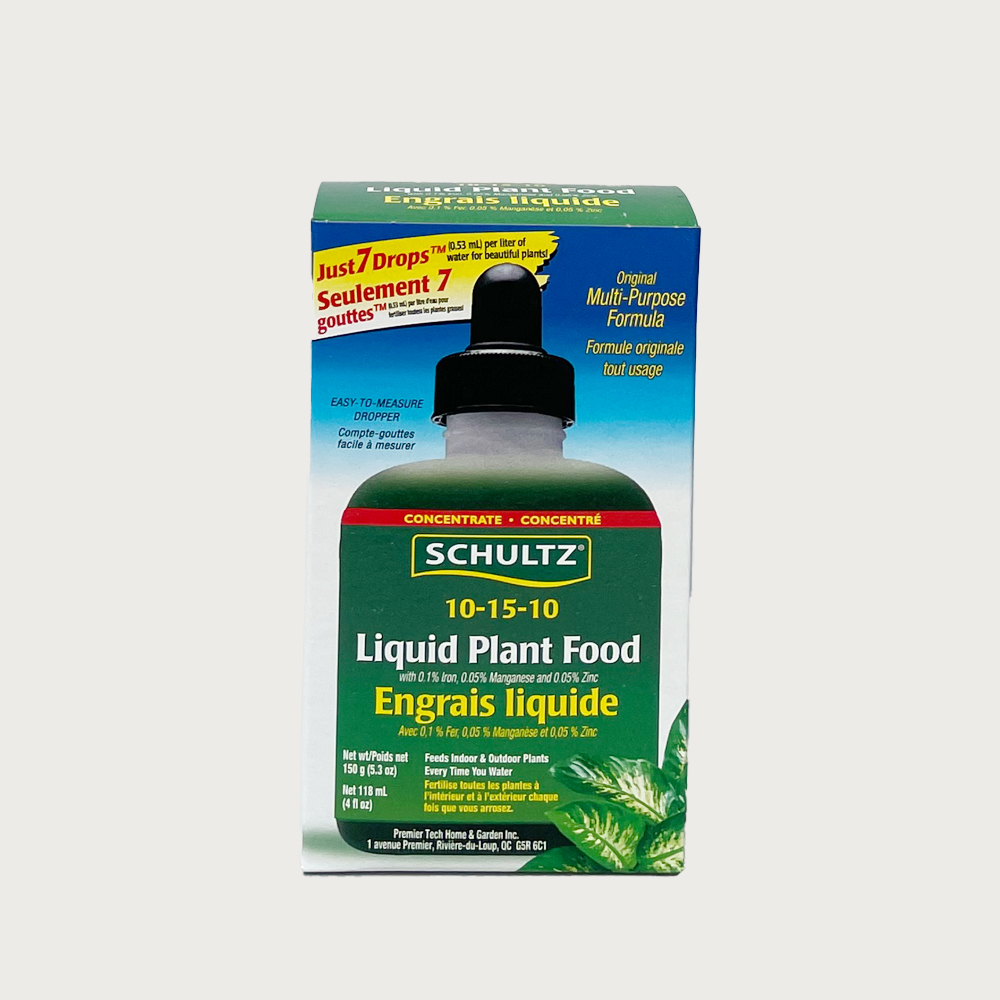 Just seven drops (0.53ml) from the easy to measure dropper into one litre of water feeds both indoor and outdoor plants every time you water. Liquid Plant Food Concentrate is ideal for all types of plants. Includes iron, manganese, and zinc.