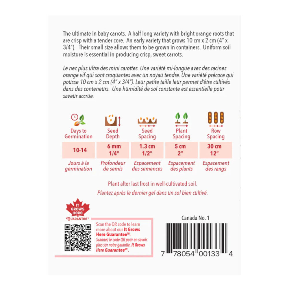 Little Finger Carrot Seeds are a fun choice for little gardeners to plant and enjoy, these tender sweet tasting miniature carrots are an ideal selection for eating fresh. When shared with bigger gardeners these are favorites in canning or pickling. For best flavor, harvest when roots are no more than 5 cm (2″) in diameter.