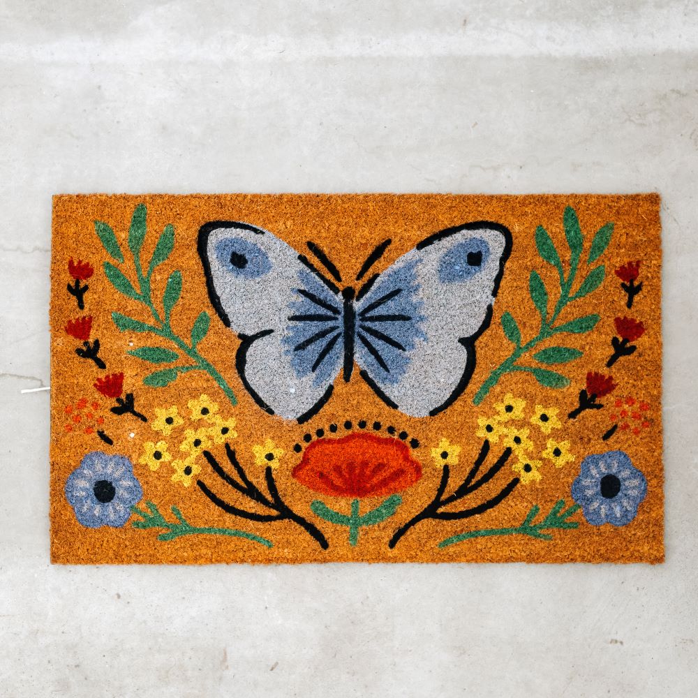 This colourful Morning Meadow Doormat is a colourful reminder that spring is certainly coming. Crafted out of durable coir fibre, this doormat features a variety of vibrantly coloured blooms and butterflies.
