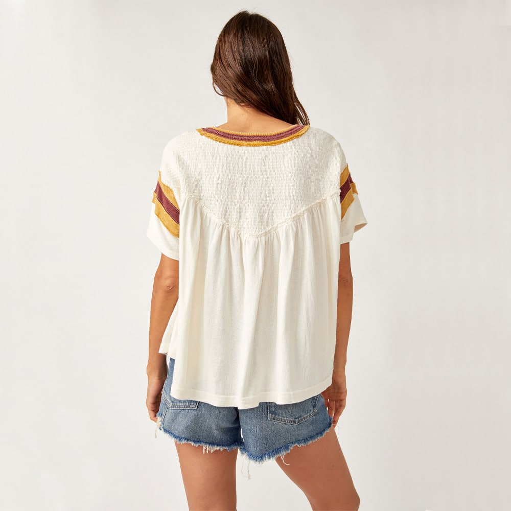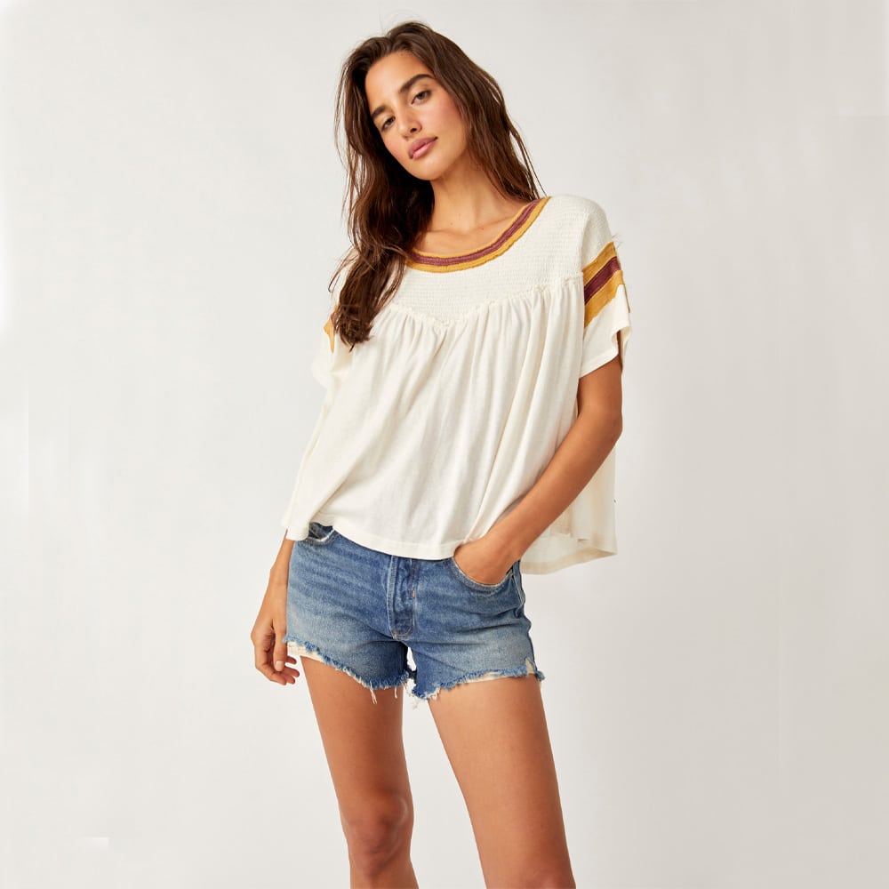 An elevated take on the classic tee, this short-sleeve MVP Tee from our Free People collection is featured in a soft fabrication and billowy silhouette with smocked detail and contrast stripe detailing.