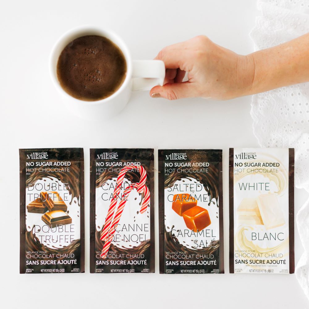 Everyone can enjoy hot chocolate this year with Gourmet Village’s No Sugar Added Hot Chocolate Singles! Even those who can’t have the extra sugar! This No Sugar Added candy cane hot chocolate only has 3g of sugar in the whole packet.
