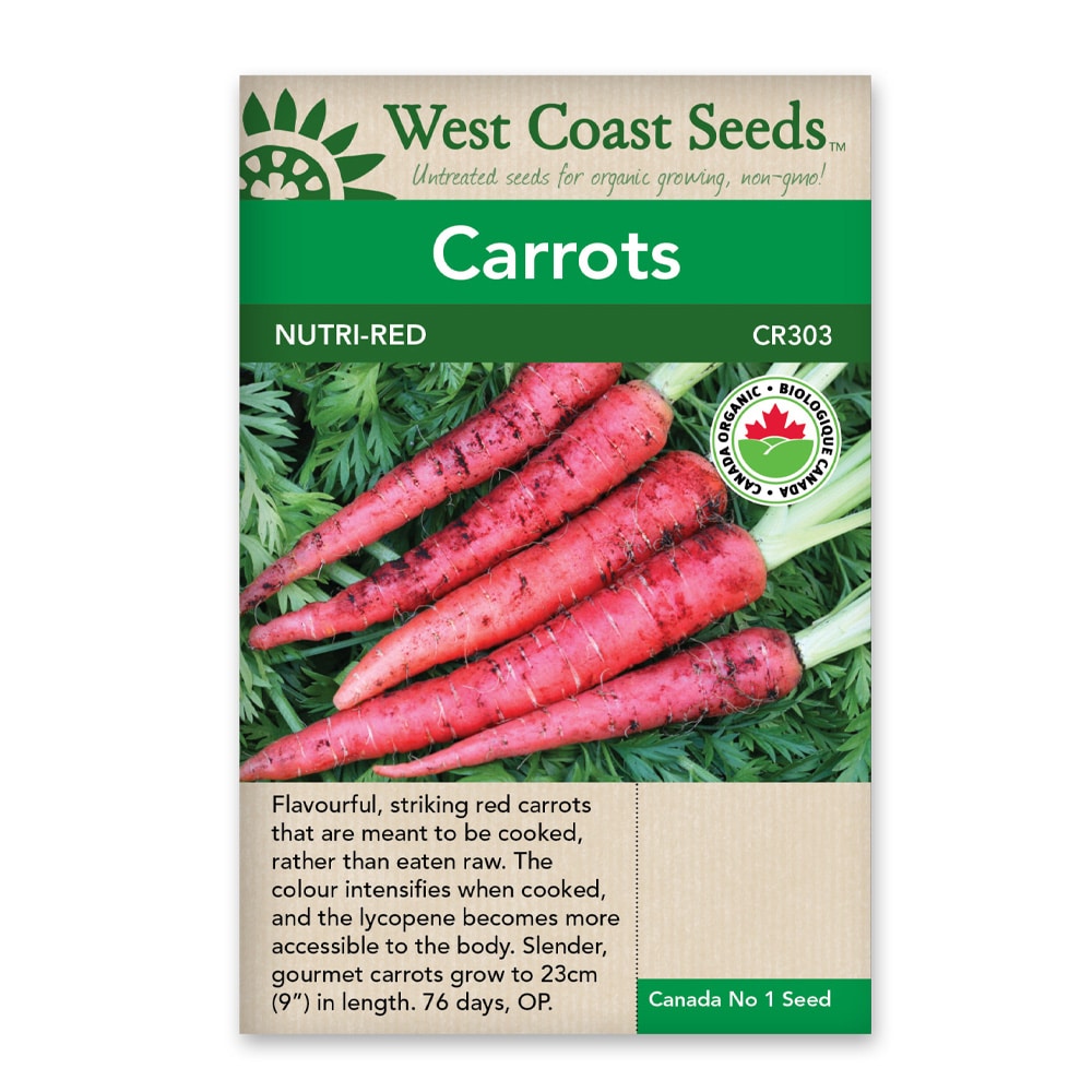 These flavourful, striking red carrots are meant to be cooked rather than eaten raw. This Danvers type is exceptionally rich in lycopene, the same antioxidant found in tomatoes. The colour actually intensifies when cooked, and the lycopene becomes more accessible to the body. Slender gourmet carrots to 23cm (9”) in length.